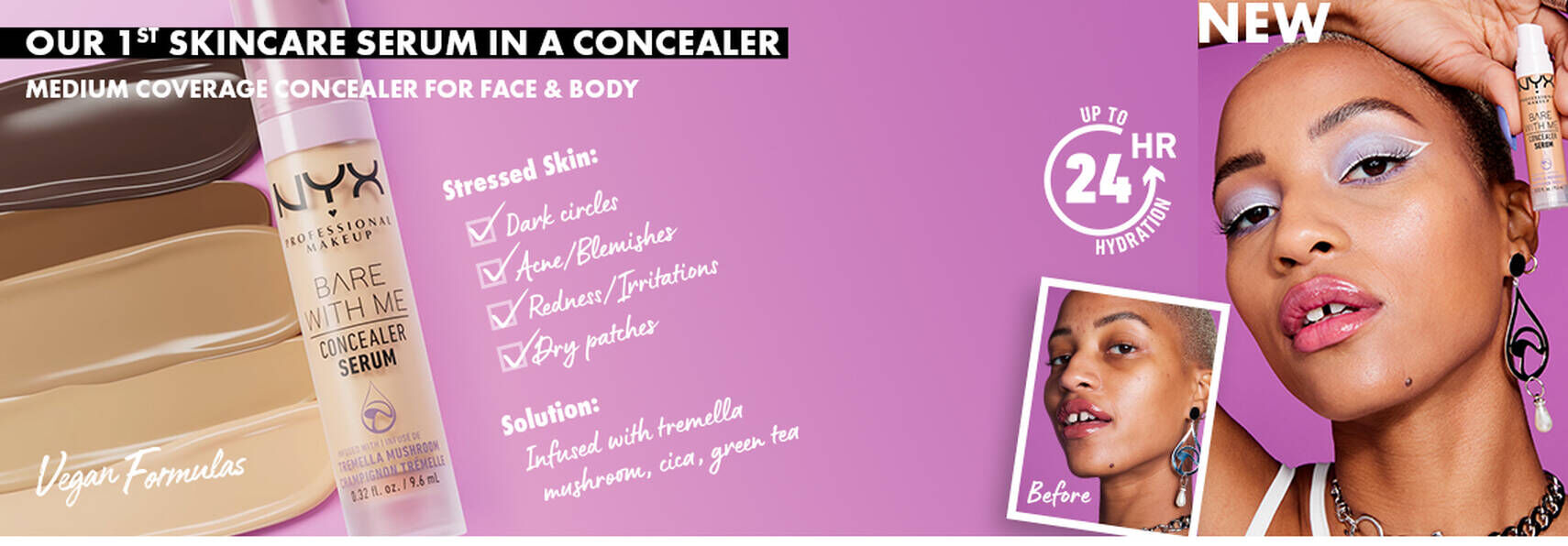 ¿Piel estresada? ¡No más! Corrige e hidrata la piel aplicando una dosis de Bare With Me Concealer Serum en la piel usando una brocha difuminadora. Aplica dos dosis en áreas problemáticas como ojeras, zonas con acné y/o rojeces así como zonas resecas.